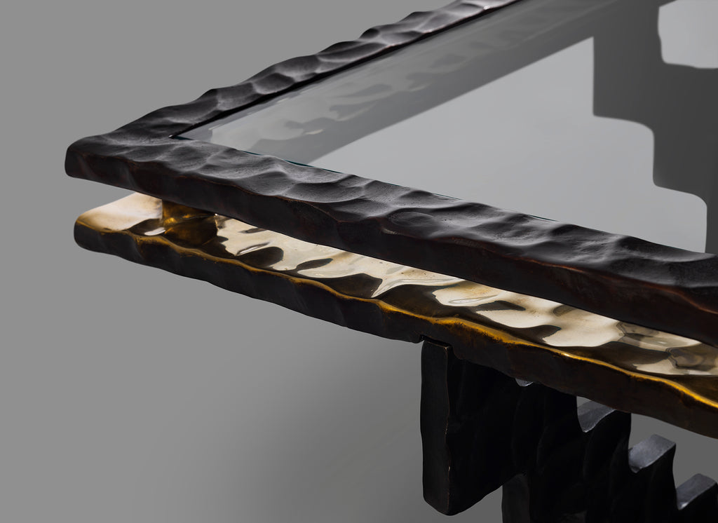 Our artisans engage with rough surfaces set against highly polished molten ones, dark versus light. Ancient and modern. Extreme contrasts and visually appealing weighty objects that hold gravitas and stir visceral emotion.