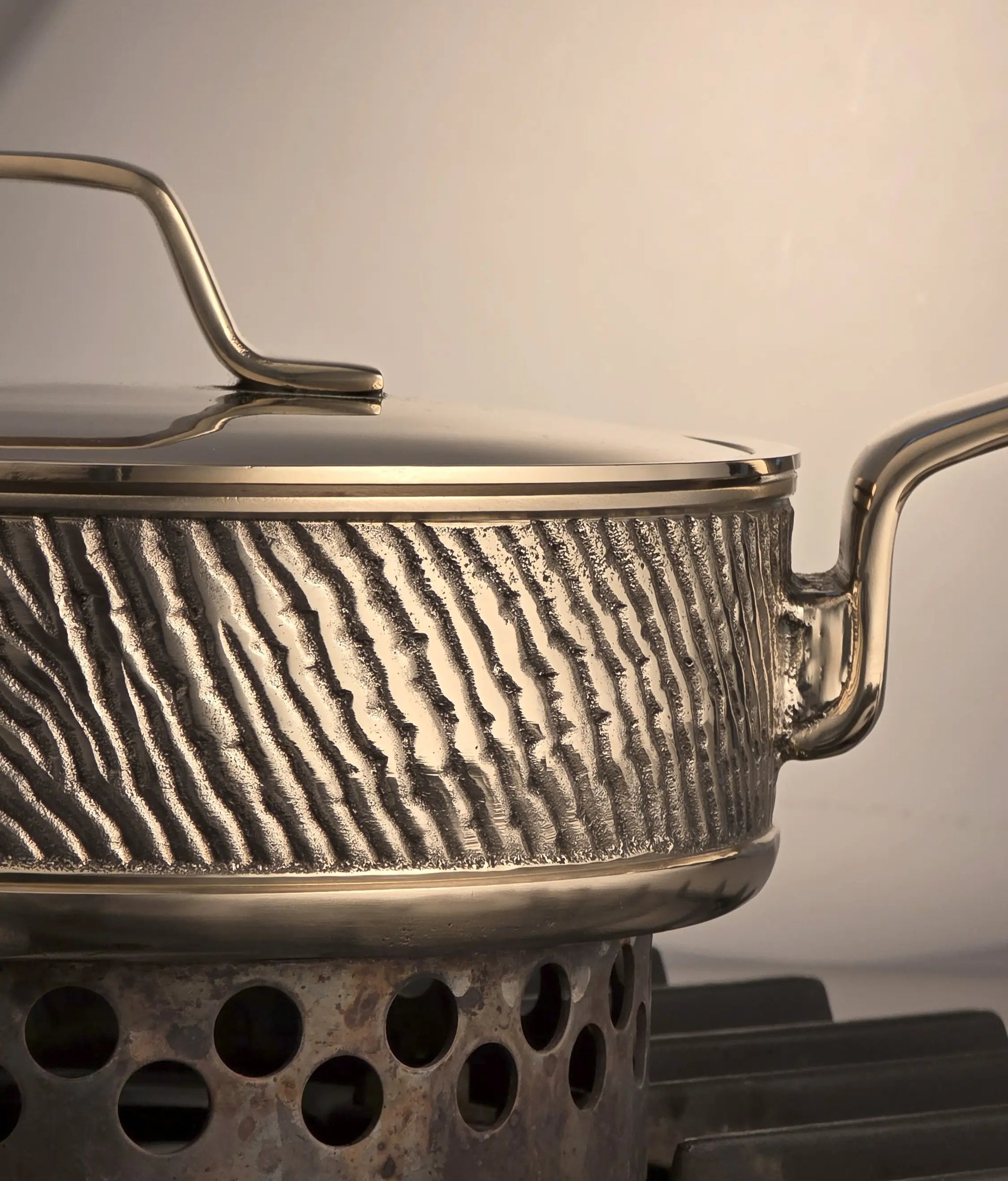 Indulge in the extraordinary. This is not merely cookware, but sculpture. The exterior of our pans feature wrought, sculptural lines set against molten polished ones. Evoking tensions between dark and light, ancient and modern. A visually appealing look that could only be achieved with a highly specialised casting process.